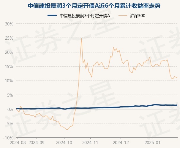 本站消息,1月27日,中信建投景润3个月定开债A最新单位净值为1.066元,累计净值为1.066元,较前一交易日上涨0.08%。历史数据显示该基金近1个月上涨0.24%,近3个月上涨1.09%,近6个月上涨1.37%,近1年上涨3.68%。该基金近6个月的累计收益率走势如下图: